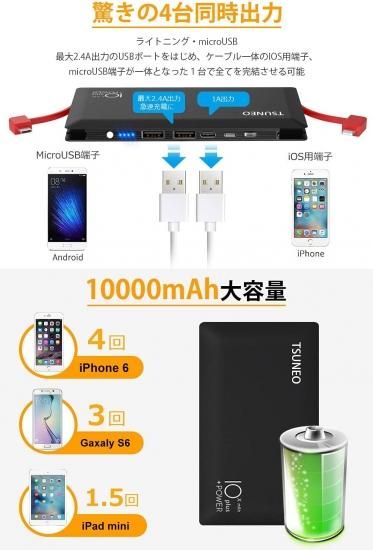 ¥â¥Ð¥¤¥ë¥Ð¥Ã¥Æ¥ê¡¼ 10000mAh ¥±¡¼¥Ö¥ëÆâ¢ ·ÚÎÌ ¾®·¿ ÂçÍÆÎÌ 2in1(Micro USB+¥é¥¤¥È¥Ë¥ó¥°Æâ¢) 4ÂæÆ±»þ½¼ÅÅ ·ÈÂÓ½¼ÅÅ´ï Çö·¿ µÞ®½¼ÅÅ »ÄÎÌɽ¼¨ PSEǧ¾ÚºÑ ι¹Ô/½ÐÄ¥/ÃÏ¿Ì/Ëɺҥ°¥Ã¥º iPhone/iPad/Android³Æ¼ïÂбþ (¥Ö¥é¥Ã¥¯)