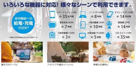 ¡Ö¥Ý¡¼¥¿¥Ö¥ëÅŸ» 500Wh¡×¤ÏËÜÂÎ¤ËÆâ¢¤µ¤ì¤Æ¤¤¤ë¥Ð¥Ã¥Æ¥ê¡¼¤ËÅŵ¤¤òÃߤ¨¡¢³°Éô¤Îµ¡´ï¤ËµëÅŤǤ¤ëÃßÅÅ´ï¤Ç¤¹¡£